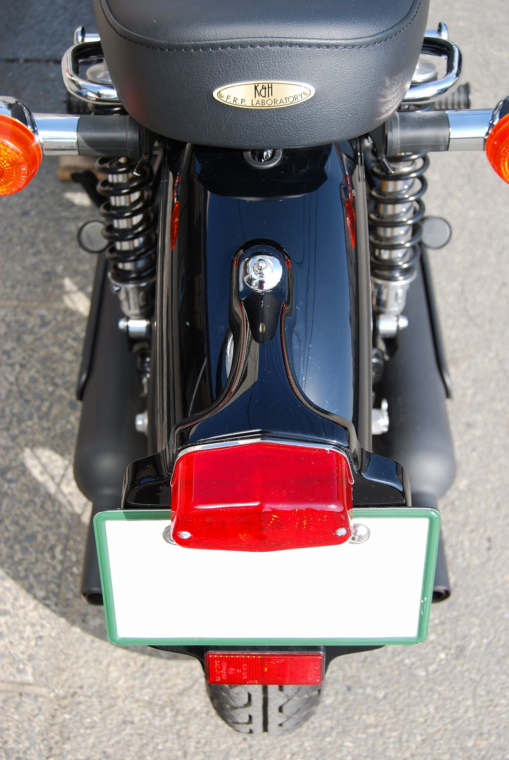 純正フェンダーへの穴あけ加工無しに取り付けが可能なルーカスランプ付きライセンスプレートです。