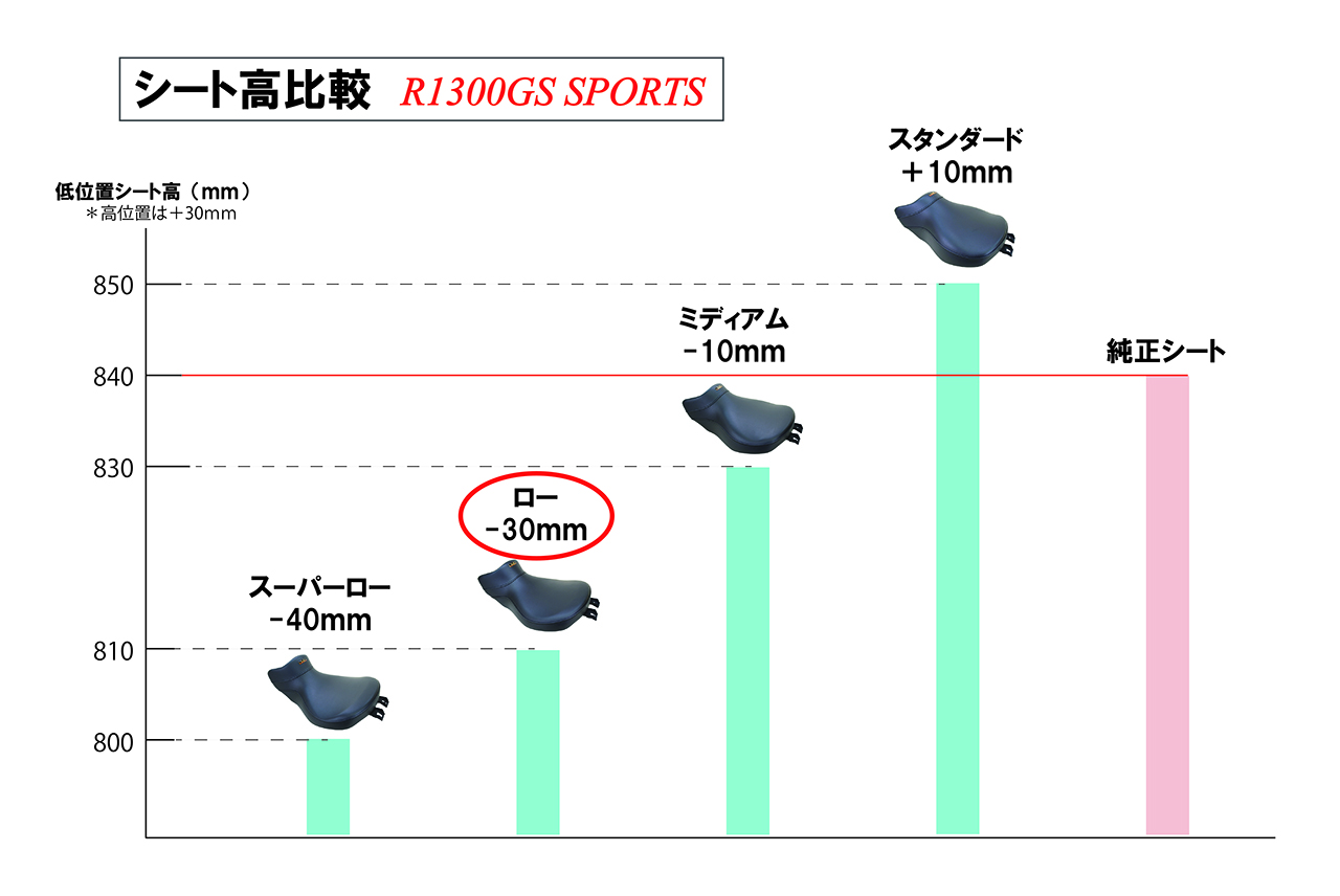 R1300GS 専用設計トリコロールカラーのローシート(純正シート比-30mm)のトリコールカラーです。