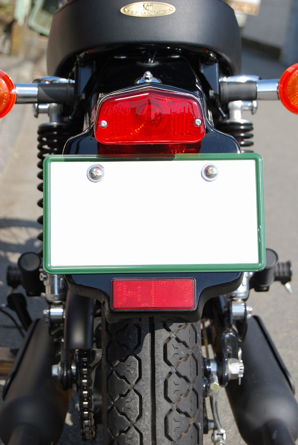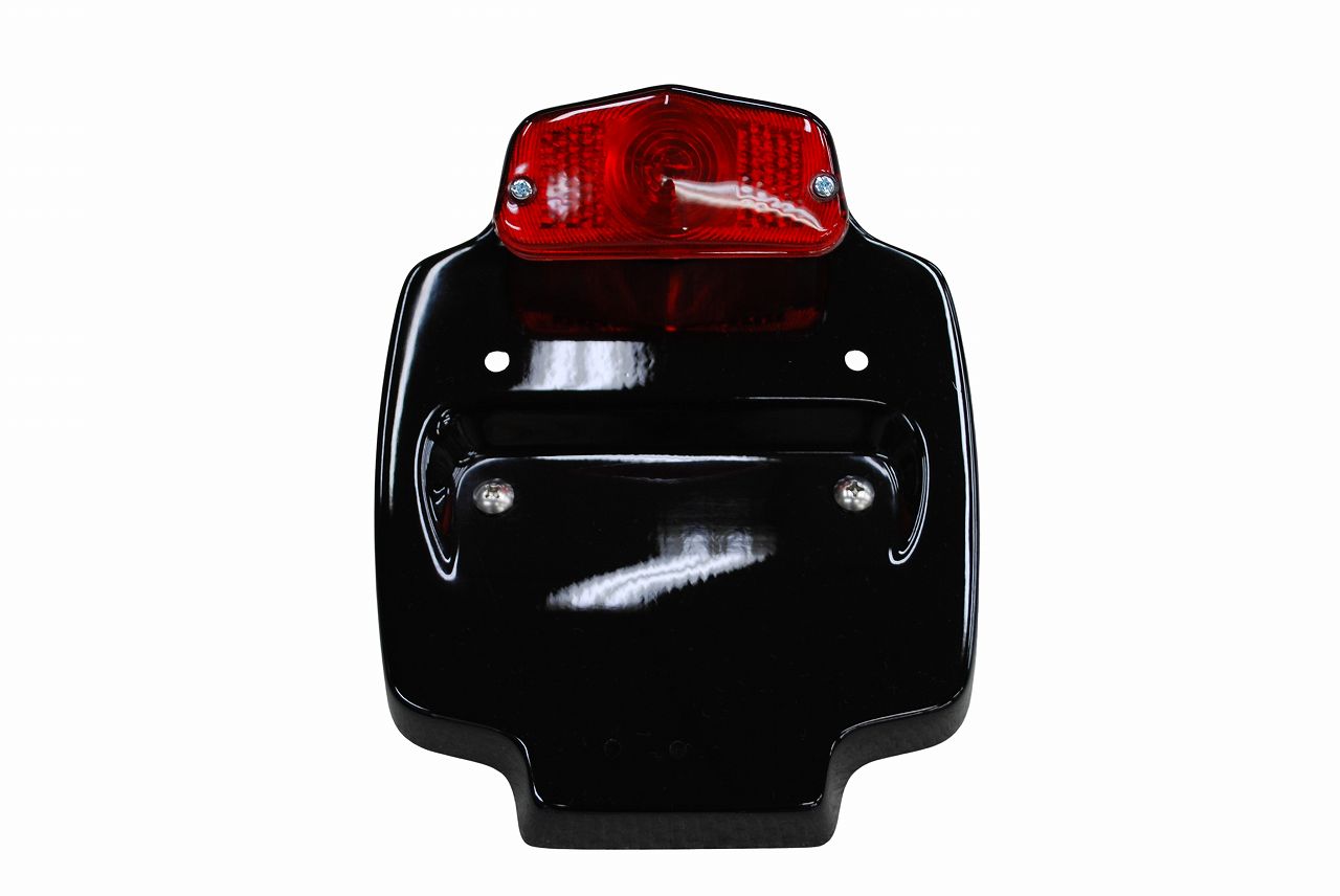 純正フェンダーへの穴あけ加工無しに取り付けが可能なルーカスランプ付きライセンスプレートです。