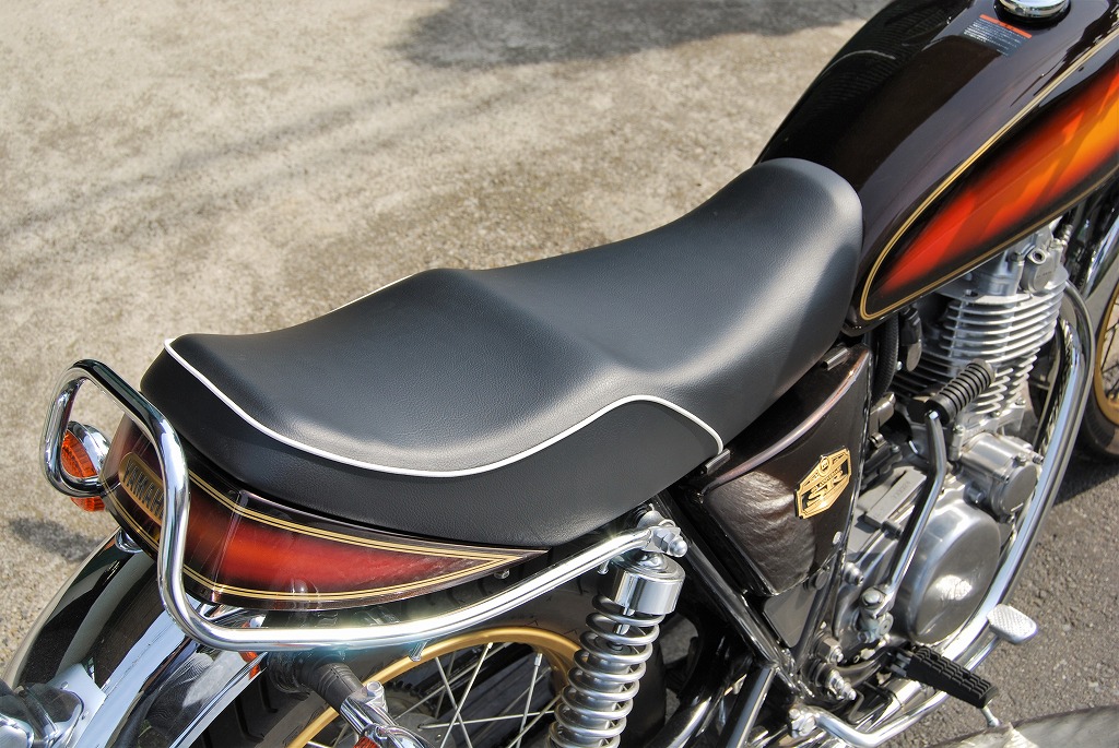 キャブレター / 最終5型含むFIに装着可能な(’78初期型を除く)な純正シートカウルが取り付けられる段付きシートです。